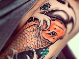 Por ejemplo el pez koi es el más popular de los tatuajes japoneses ya que es el símbolo de la fuerza de voluntad, la lucha, y la capacidad de superar problemas para seguir adelante, ya que es un pez capaz de nadar contra la corriente.